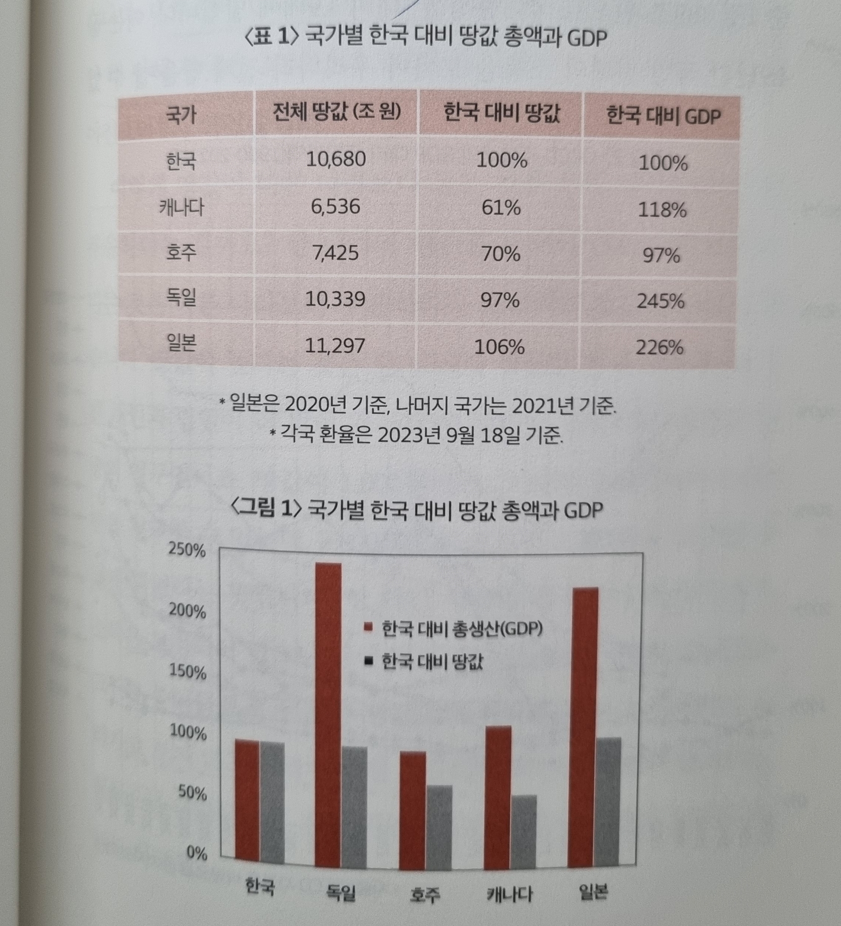 2. 한국 토지시가총액은 (만약 거래할 수 있다면) 캐나다를 대충 두 번 살 수 있어. 근데 캐나다는 우리보다 GDP가 더 큼.
