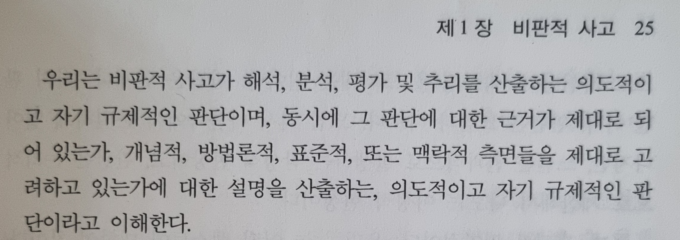비판적 사고란 건전한 추론 및 논증과 그 검증을 할 수 있는 판단능력입니다.*